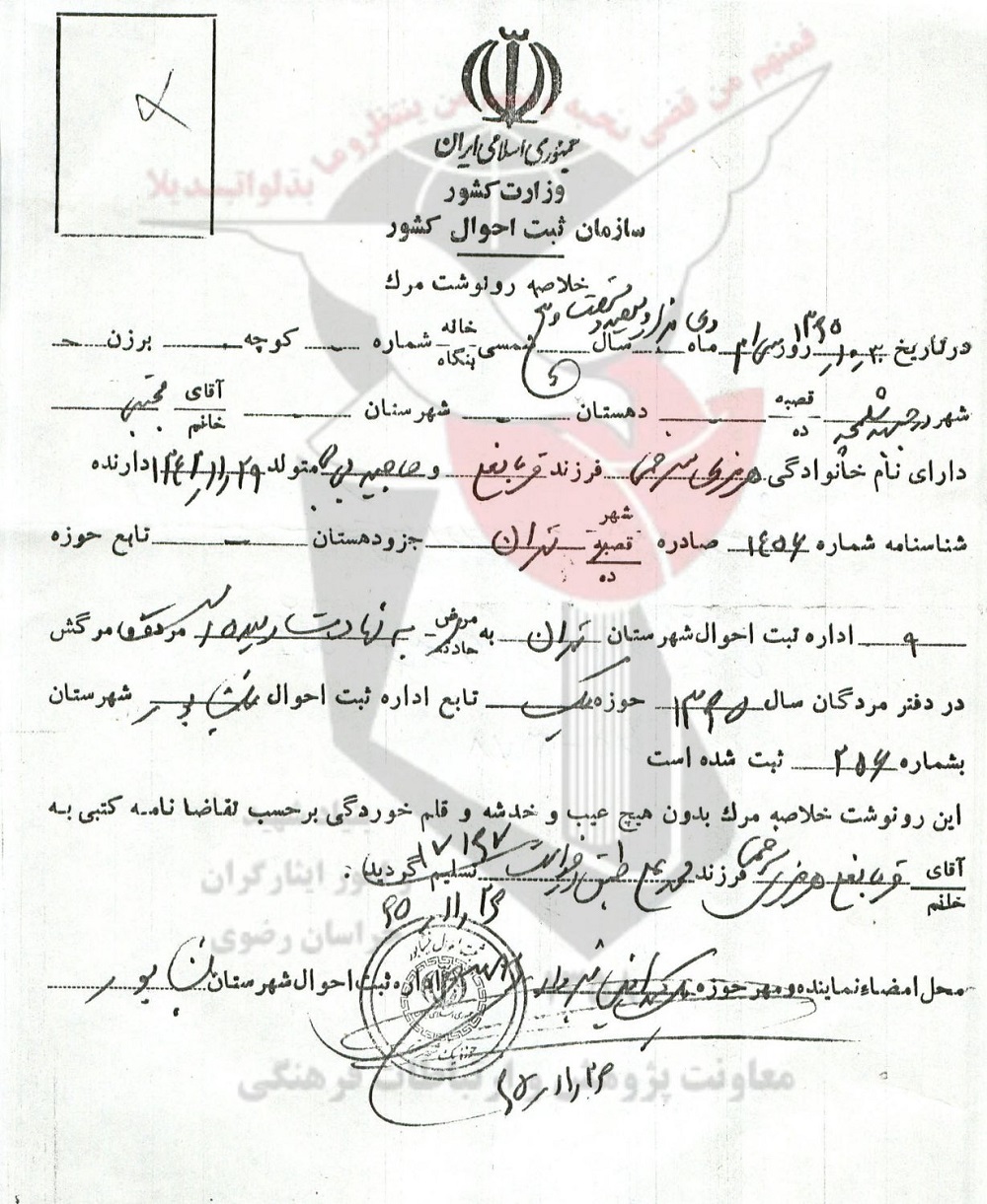 محل تولد: استان تهران